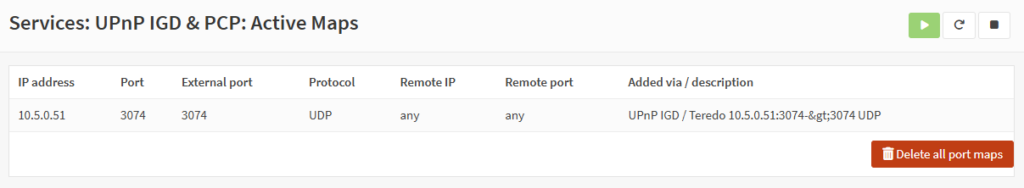 - Navigate to Services -> UPnP IGD & PCP -> Active Maps